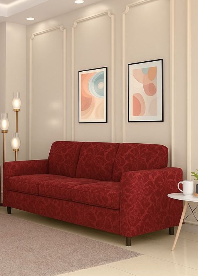 This cover is in a luxurious, deep wine or crimson red, featuring an all-over tone-on-tone damask or large floral pattern. The subtle texture provides visual richness, giving the sofa a sophisticated, classic, and plush feel suitable for both formal and modern settings.