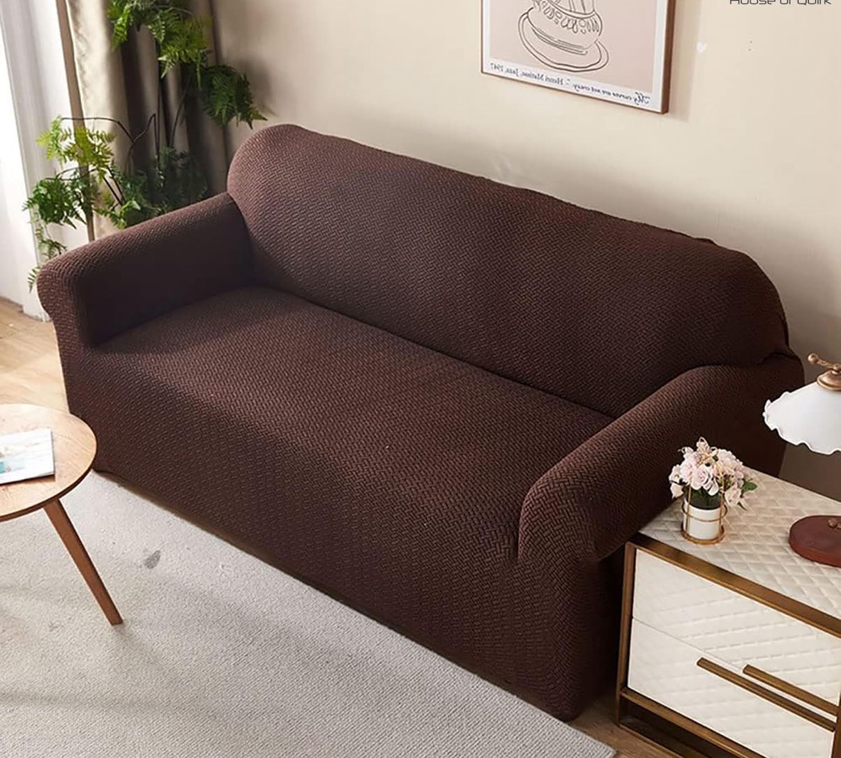 The rich chocolate brown color of this sofa cover brings warmth and earthiness to a room. Its design features a subtle, interwoven or basket-weave-like texture that prevents it from looking flat. The aesthetic is cozy, grounded, and versatile, easily blending into rustic, traditional, or transitional interiors. It provides a snug, form-fitting silhouette that refreshes an old sofa instantly.