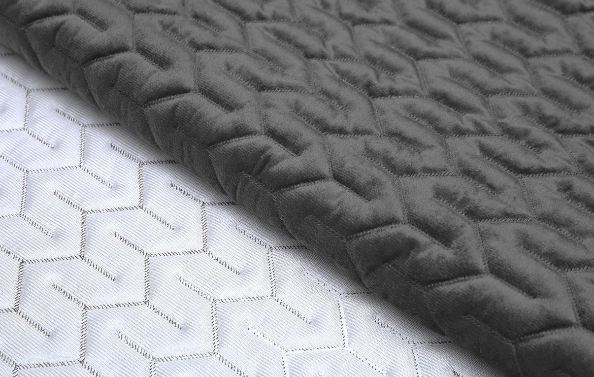 This quilted furniture cover or protector is presented in a soft, charcoal grey color. The texture is created by a complex geometric quilting interlocking hexagon design stitched across a plush, possibly velvet or micro-suede, fabric. The cover is finished with a neat matching fabric border, offering a clean, contemporary look that is both cozy and refined.